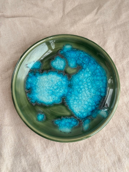 Hand Thrown White and Sea foam glass Jewlery Dish