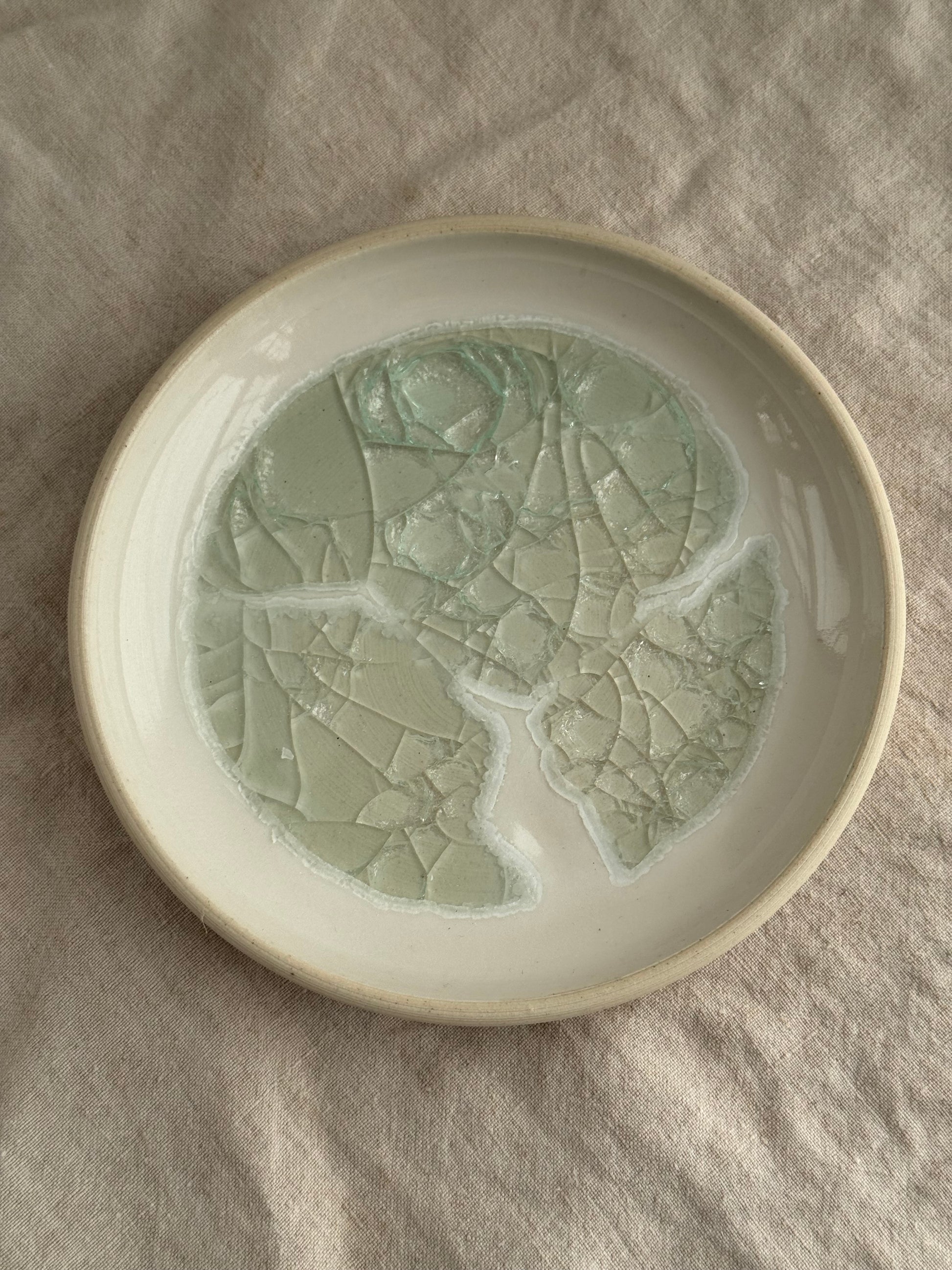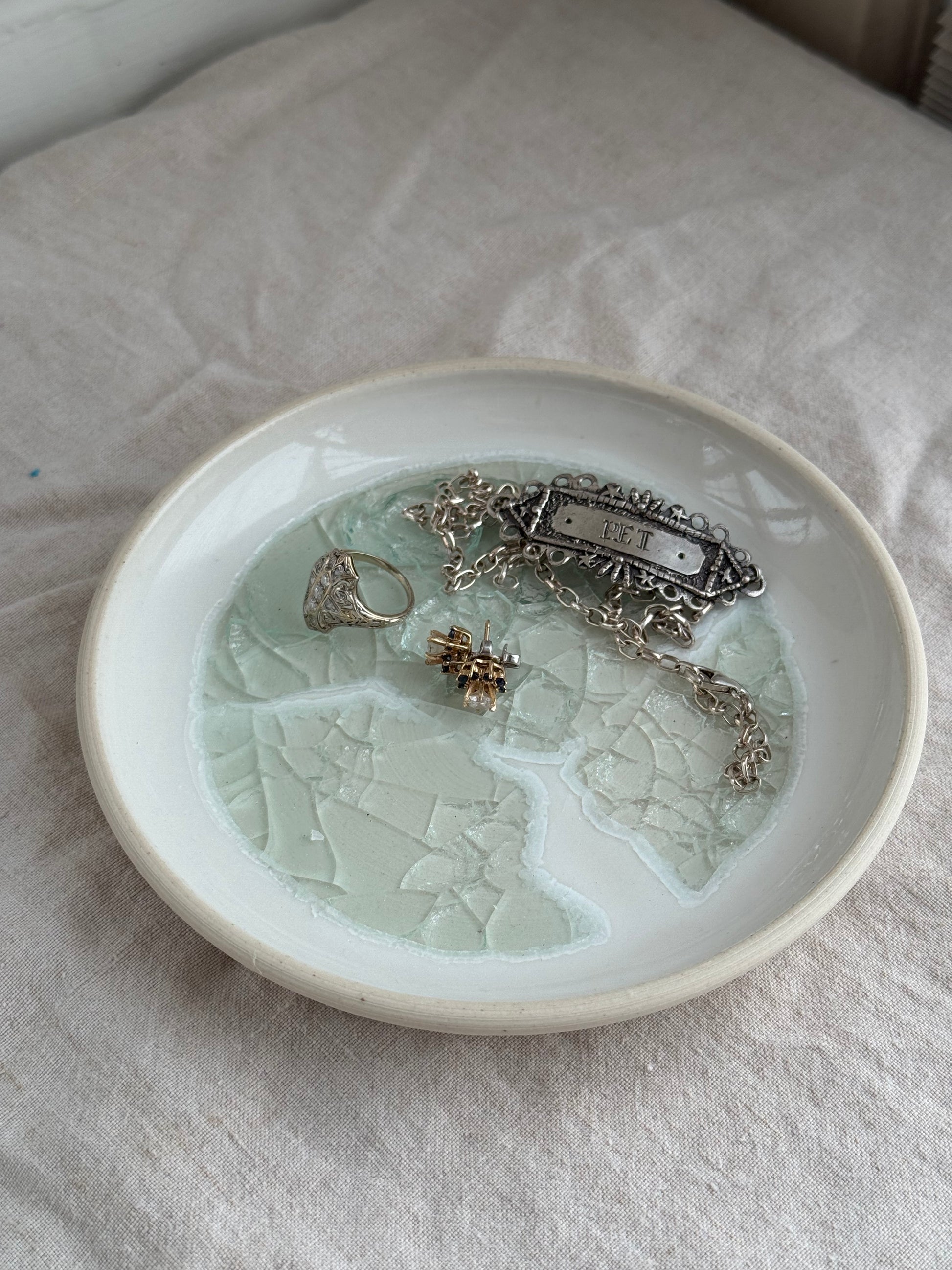 Hand Thrown White and Sea foam glass Jewlery Dish